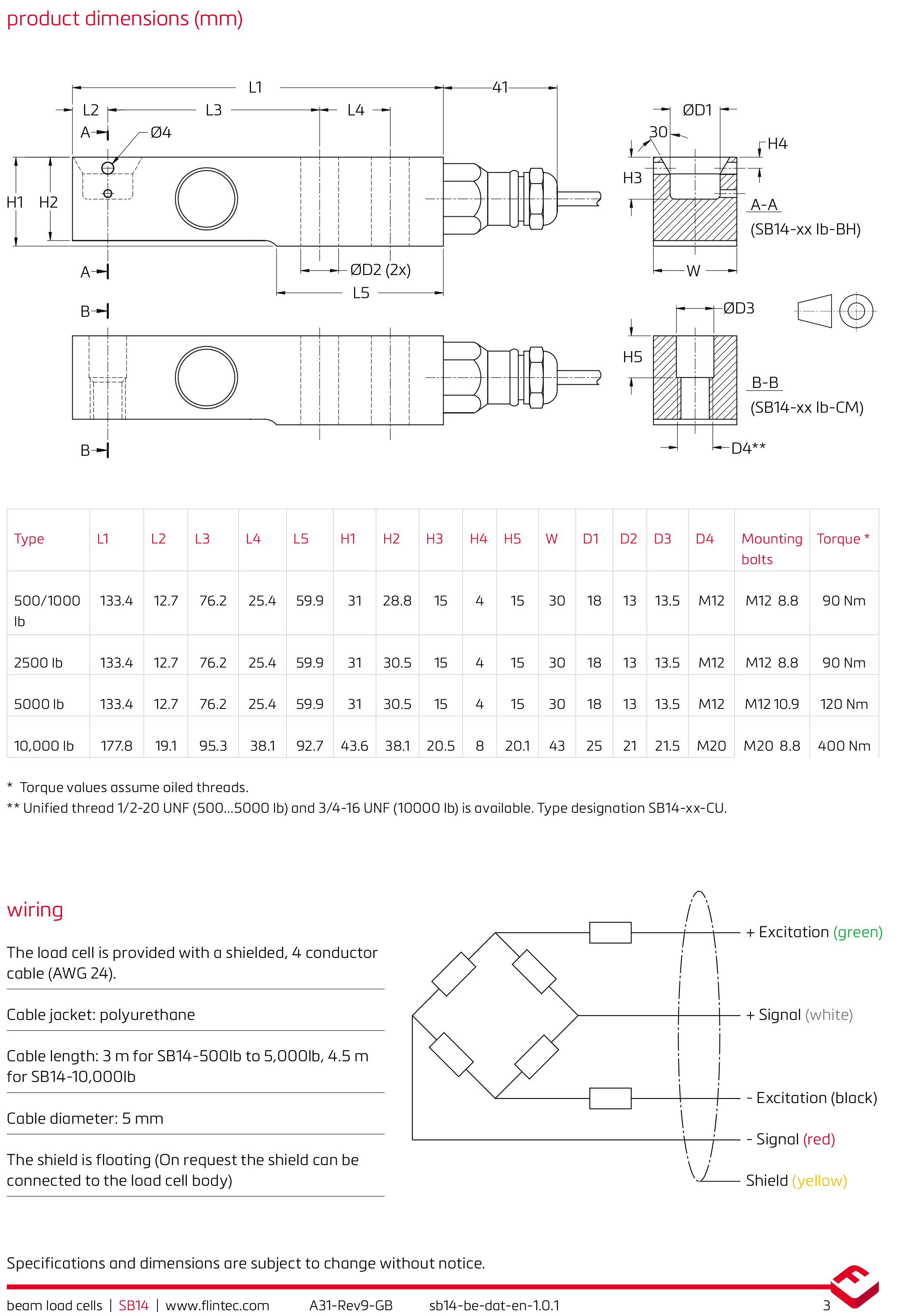 Loadcell SB14 được làm bằng thép không gỉ, kín hoàn toàn, phù hợp sử dụng cho môi trường công nghiệp.